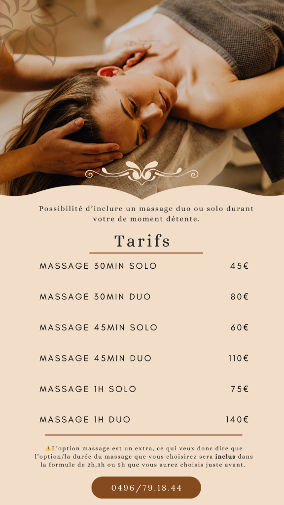 PRIX DE NOS MASSAGES (Duo ou solo):